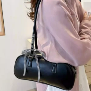 Ballet-style bow handbag, silver, women’s, new trendy Korean style, niche underarm bag, large capacity.